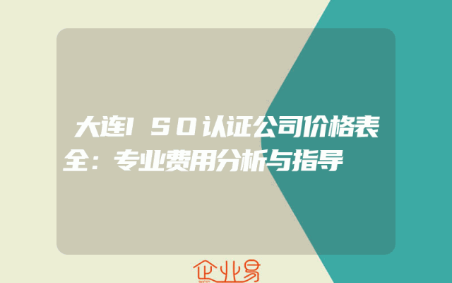- 大连ISO认证公司价格表全:专业费用分析与指导