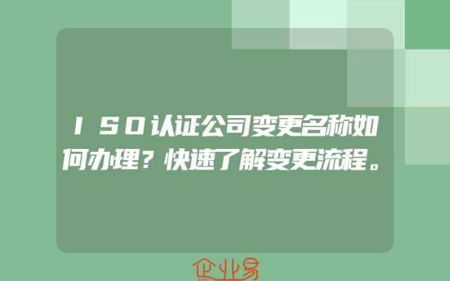 - ISO认证公司变更名称如何办理?快速了解变更流程。