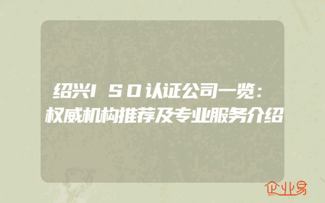 - 绍兴ISO认证公司一览:权威机构推荐及专业服务介绍