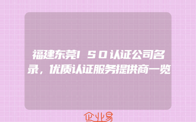 - 福建东莞ISO认证公司名录,优质认证服务提供商一览