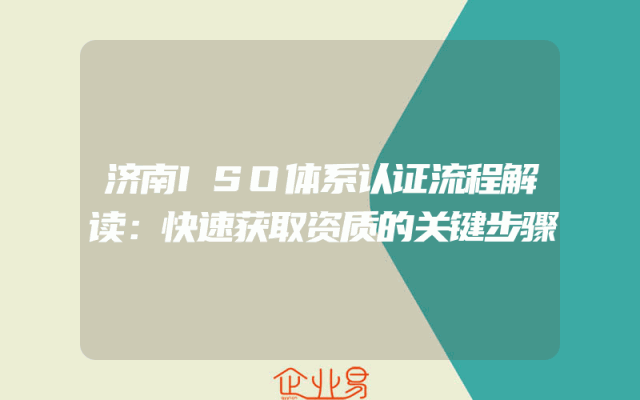 - 济南ISO体系认证流程解读:快速获取资质的关键步骤