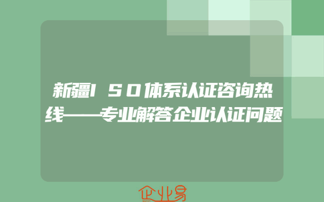 - 新疆ISO体系认证咨询热线——专业解答企业认证问题