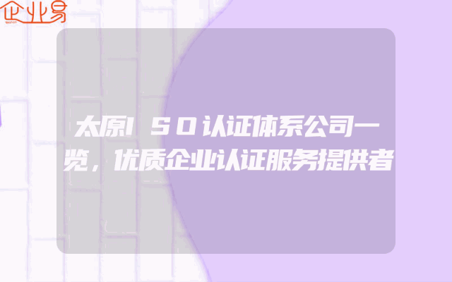 - 太原ISO认证体系公司一览,优质企业认证服务提供者