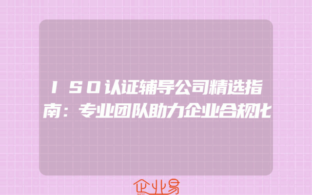 - ISO认证辅导公司精选指南:专业团队助力企业合规化