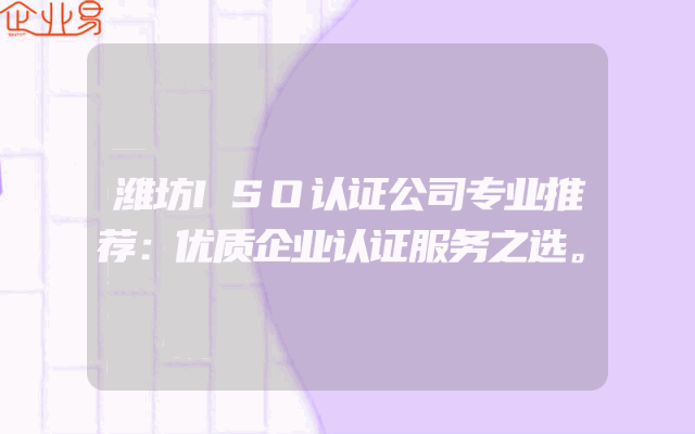 - 潍坊ISO认证公司专业推荐:优质企业认证服务之选。