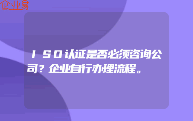 - ISO认证是否必须咨询公司?企业自行办理流程。