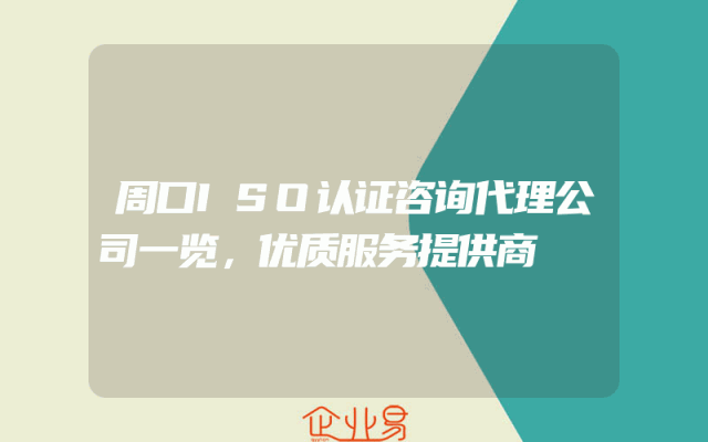 - 周口ISO认证咨询代理公司一览,优质服务提供商