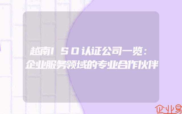 - 越南ISO认证公司一览:企业服务领域的专业合作伙伴一、越南ISO认证的重要性在全球化的背景下,企业的产品和服务质量成为国际竞争力的关键。越南的企业亦如此,越来越多的企业开始重视ISO认证。ISO认证是国际标准化组织对企业的产品和服务质量的认