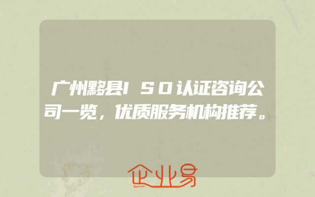- 广州黟县ISO认证咨询公司一览,优质服务机构推荐。