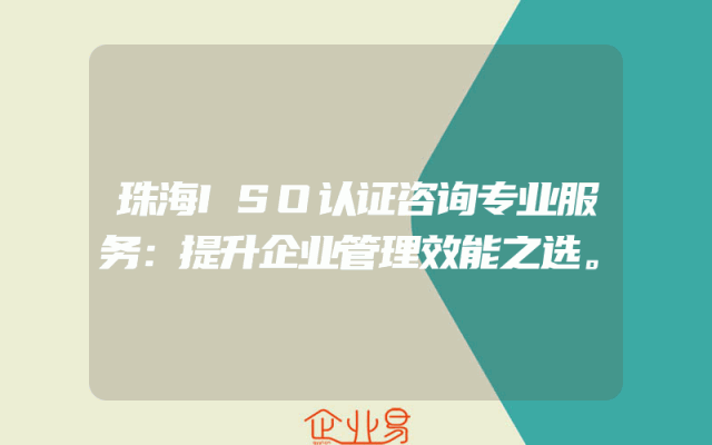 - 珠海ISO认证咨询专业服务:提升企业管理效能之选。