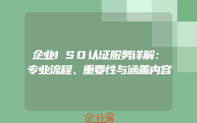 - 企业ISO认证服务详解:专业流程、重要性与涵盖内容