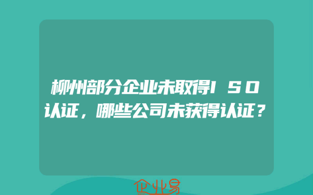 - 柳州部分企业未取得ISO认证,哪些公司未获得认证?