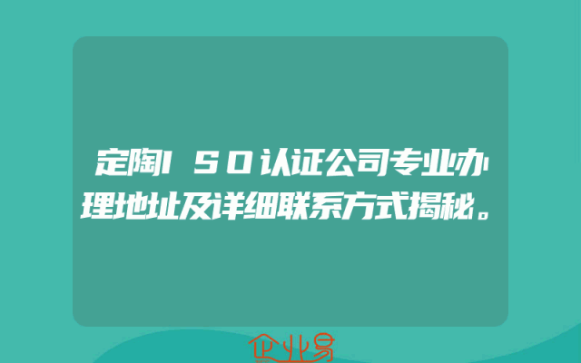 - 定陶ISO认证公司专业办理地址及详细联系方式揭秘。