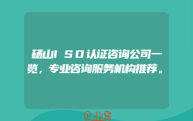 - 砀山ISO认证咨询公司一览,专业咨询服务机构推荐。