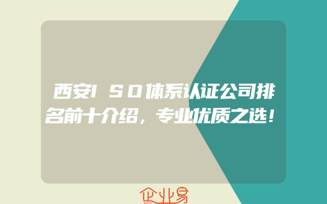 - 西安ISO体系认证公司排名前十介绍,专业优质之选!