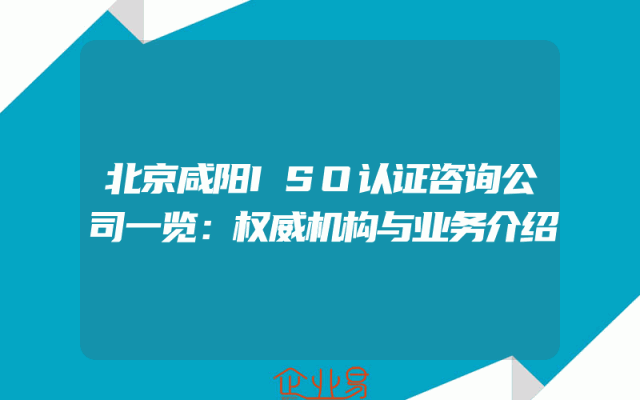 - 北京咸阳ISO认证咨询公司一览:权威机构与业务介绍