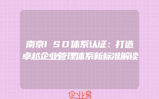- 南京ISO体系认证:打造卓越企业管理体系新标准解读