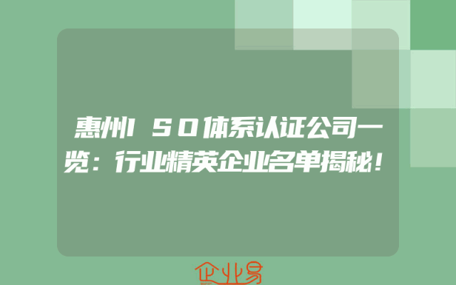 - 惠州ISO体系认证公司一览:行业精英企业名单揭秘!
