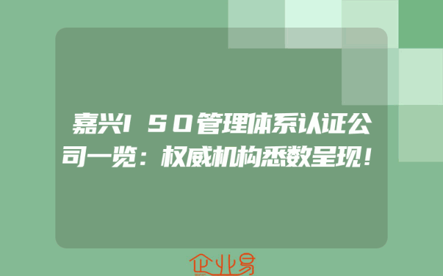 - 嘉兴ISO管理体系认证公司一览:权威机构悉数呈现!