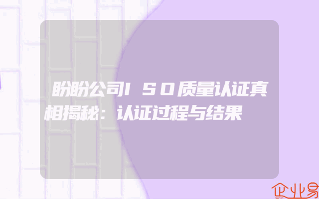 - 盼盼公司ISO质量认证真相揭秘:认证过程与结果