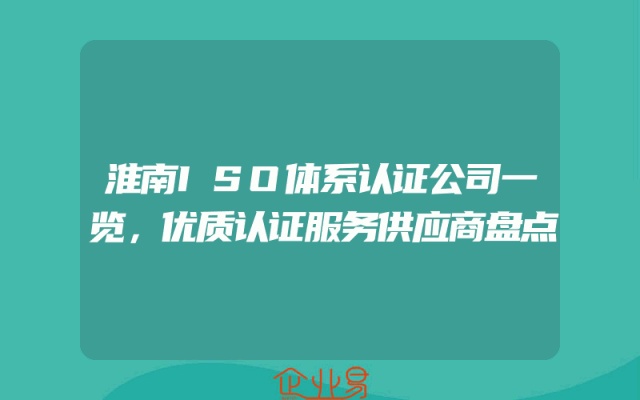 - 淮南ISO体系认证公司一览,优质认证服务供应商盘点