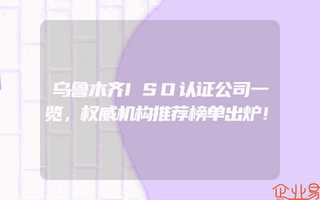 - 乌鲁木齐ISO认证公司一览,权威机构推荐榜单出炉!