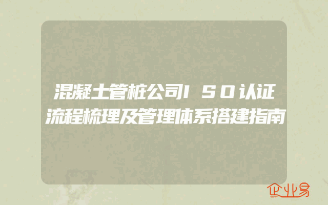- 混凝土管桩公司ISO认证流程梳理及管理体系搭建指南