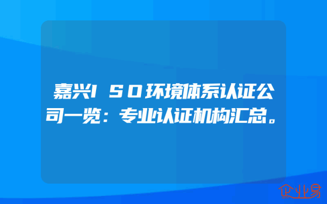 - 嘉兴ISO环境体系认证公司一览:专业认证机构汇总。
