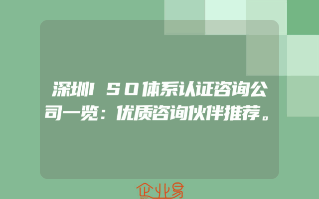 - 深圳ISO体系认证咨询公司一览:优质咨询伙伴推荐。