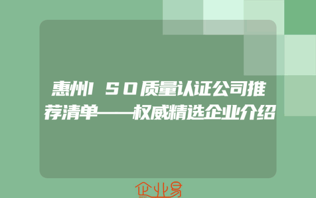 - 惠州ISO质量认证公司推荐清单——权威精选企业介绍