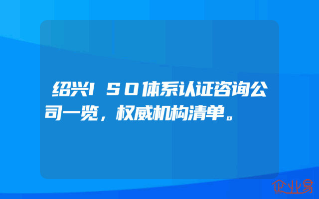 - 绍兴ISO体系认证咨询公司一览,权威机构清单。