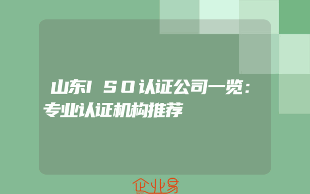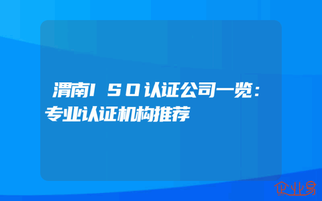 - 渭南ISO认证公司一览:专业认证机构推荐