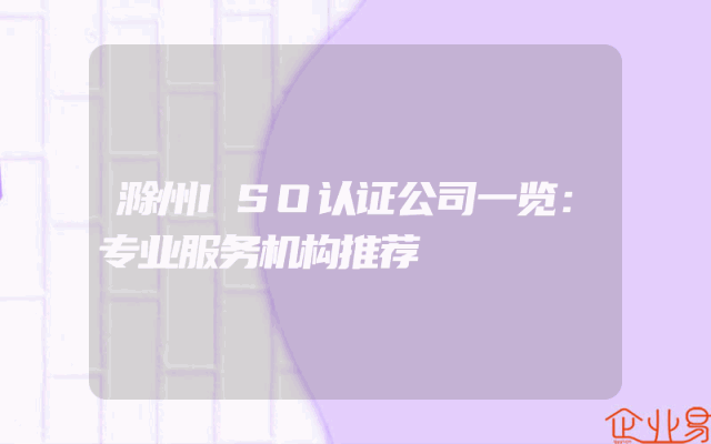 - 滁州ISO认证公司一览:专业服务机构推荐