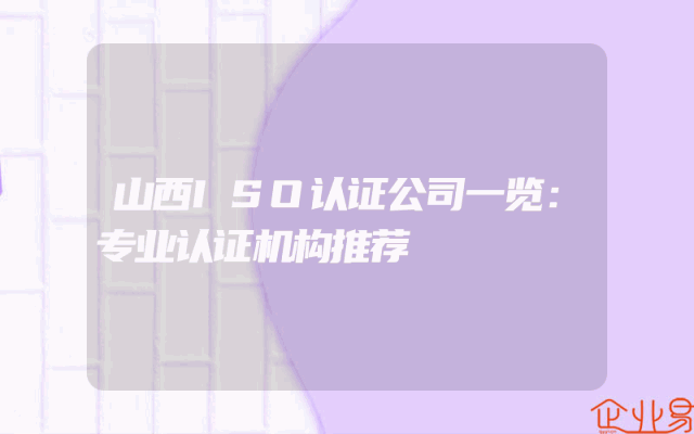 - 山西ISO认证公司一览:专业认证机构推荐一、引言在山西省,随着企业对质量管理体系要求的不断提高,ISO认证已成为众多企业追求高质量发展的重要途径。为此,本文将介绍山西地区一些专业的ISO认证公司,以便企业根据自身需求选择合适的认证机