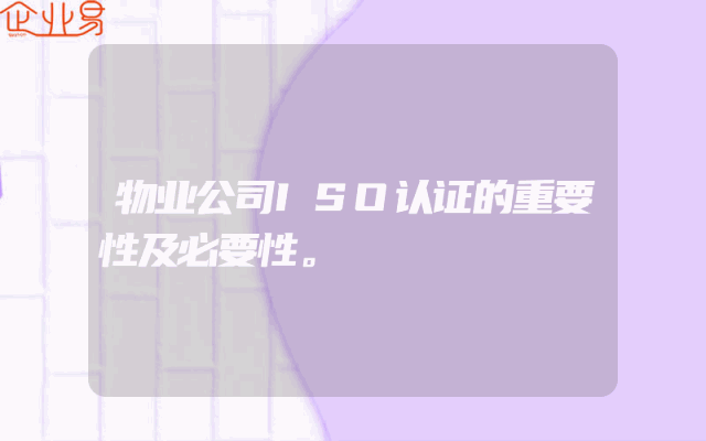- 物业公司ISO认证的重要性及必要性解析一、物业公司实施ISO认证的意义在全球化的市场经济环境中,对于任何一家致力于长期发展的企业来说,获得ISO认证不仅是提高竞争力的手段,更是对内外管理的全面优化和升级。对于物业公司而言,随着行业的发展与市