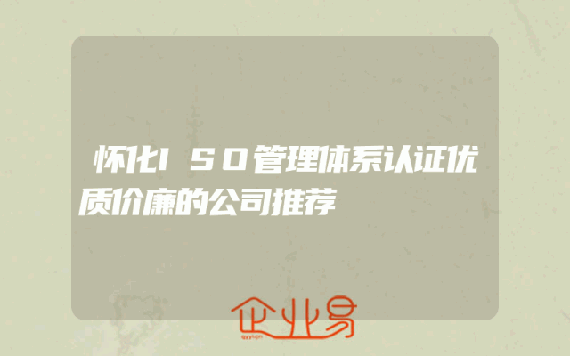 - 怀化ISO管理体系认证优质价廉的公司推荐