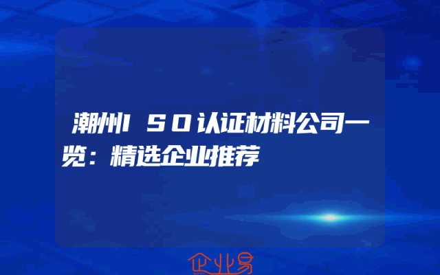 - 潮州ISO认证材料公司一览:精选企业推荐