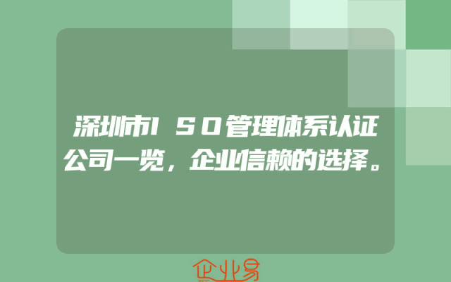 - 深圳市ISO管理体系认证公司一览,企业信赖的选择。