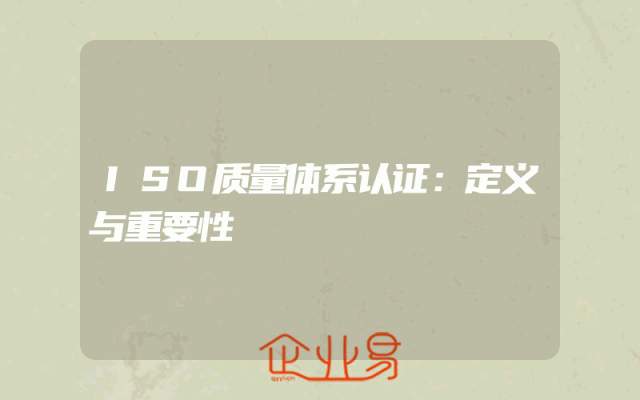 - ISO质量体系认证:定义与重要性