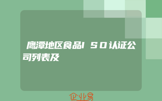 - 鹰潭地区食品ISO认证公司列表及