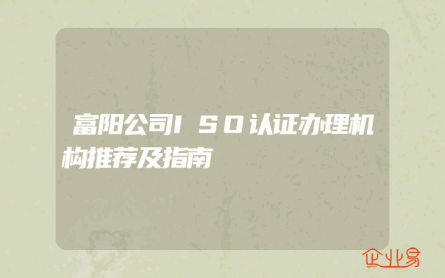 - 富阳公司ISO认证办理机构推荐及指南