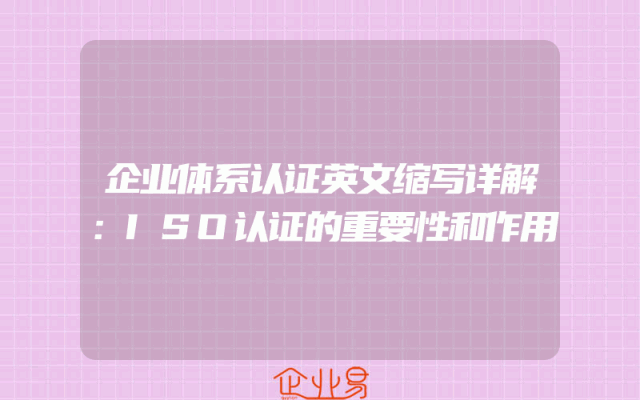 - 企业体系认证英文缩写详解:ISO认证的重要性和作用