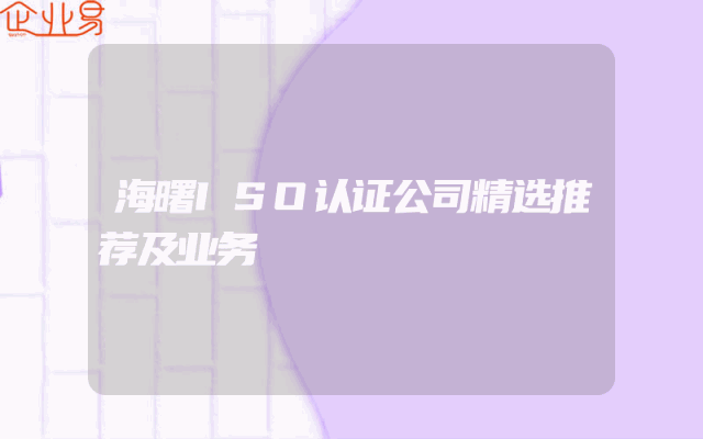 - 海曙ISO认证公司精选推荐及业务解析一、ISO认证的重要性在当今竞争激烈的市场环境下,企业追求高质量发展已成为共识。ISO认证作为国际标准化组织的一系列标准,对于提升企业的管理水平、产品质量和客户服务质量具有重要意义。海曙地区的ISO认证公