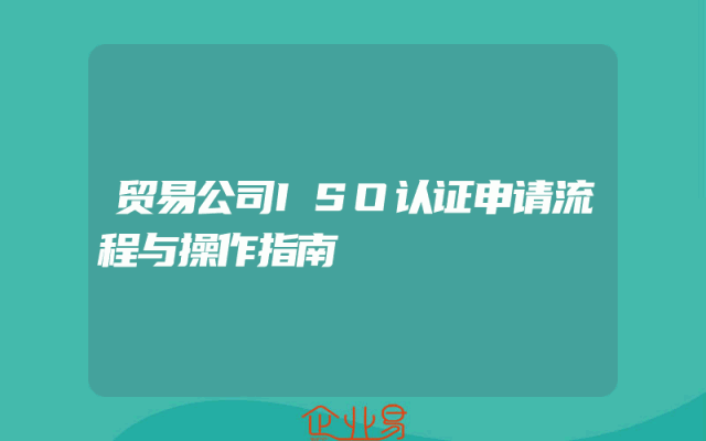 - 贸易公司ISO认证申请流程与操作指南一、了解ISO认证体系及标准作为贸易公司,首先要了解ISO(国际标准化组织)及其相关的认证体系与标准。ISO认证是国际上广泛认可的质量管理、环境管理、职业健康安全等管理体系认证的总称。对于贸易公司而言,常