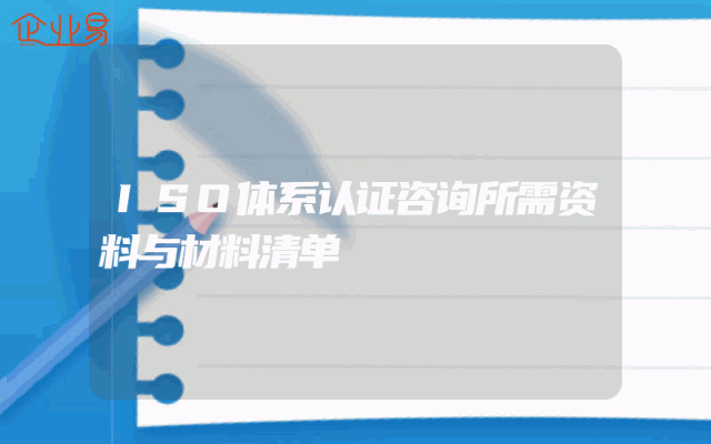 - ISO体系认证咨询所需资料与材料清单一、企业基本情况介绍在进行ISO体系认证咨询之前,首先需要提供企业的基本情况介绍。这包括企业的名称、成立时间、注册资本、经营范围、组织架构、员工人数等基本信息。二、质量管理体系文件对于ISO体系认证而言,