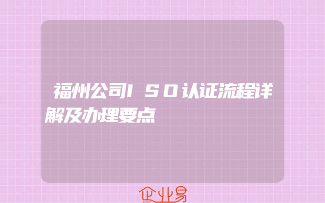 - 福州公司ISO认证流程详解及办理要点一、ISO认证简介ISO认证是企业质量管理的重要标准,旨在帮助企业改进运营效率,提升产品和服务质量。福州公司作为追求卓越的企业,进行ISO认证是提升竞争力的关键一步。下面将详细介绍福州公司ISO认证的流程