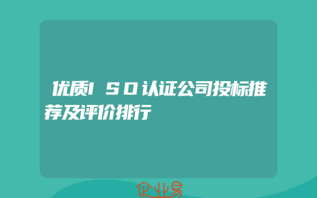 - 优质ISO认证公司投标推荐及评价排行一、ISO认证的重要性在当今竞争激烈的市场环境下,企业寻求持续发展和提升已成为必然趋势。ISO认证作为企业管理和运营的重要标准,已成为企业参与国内外市场竞争的必备条件之一。一个优质的ISO认证公司能够为企