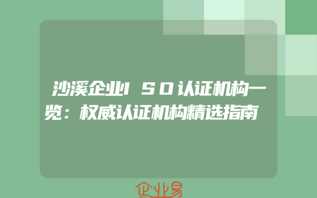 - 沙溪企业ISO认证机构一览:权威认证机构精选指南