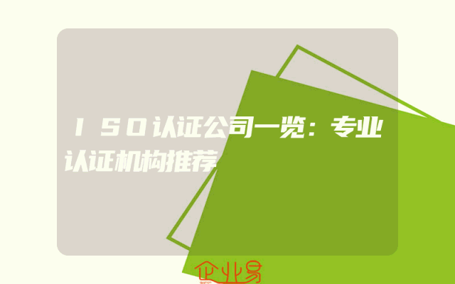- ISO认证公司一览:专业认证机构推荐一、ISO认证的重要性在全球化的背景下,企业的运营离不开国际间的交流与合作。为了保障产品和服务的质量,提高企业的管理水平,越来越多的企业开始寻求ISO认证。ISO认证是国际上通行的质量管理体系认证,可以帮
