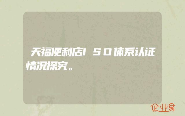 - 天福便利店ISO体系认证情况探究一、引言随着经济全球化的发展,越来越多的企业开始重视体系认证,以证明自身的质量管理和服务水平。天福便利店作为国内知名的零售企业,其ISO体系认证情况值得我们深入探究。ISO体系认证不仅关系到企业的内部管理效率